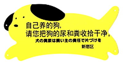 区内收到了众多狗类粪便的投诉。 ・请遛狗前在家如厕,或遛狗时佩戴保护腰带(尿布)。 ・在狗大小便后,请务必清理,佩戴保护腰带。遛狗时携带装水容器,大小便后充分淋水清洗。 详情请确认新宿区主页。