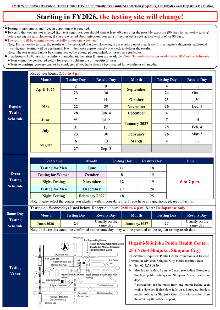 The Shinjuku Public Health Center Provides Anonymous and Free Testing for HIV and Other Sexually Transmitted Diseases (Syphilis, Hepatitis B and Chlamydia)