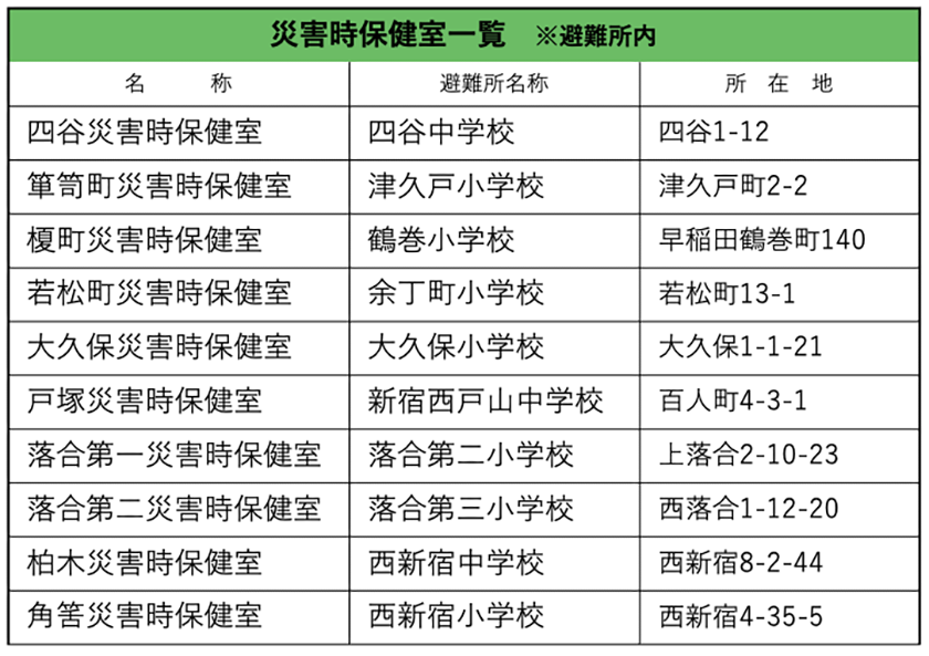また、これまで区内10か所の避難所に併設していた医療救護所は、「災害時保健室」に名称を変更し、保健師等がこころとからだの健康相談を行い、必要に応じて医療機関や専門職に引き継ぎます。